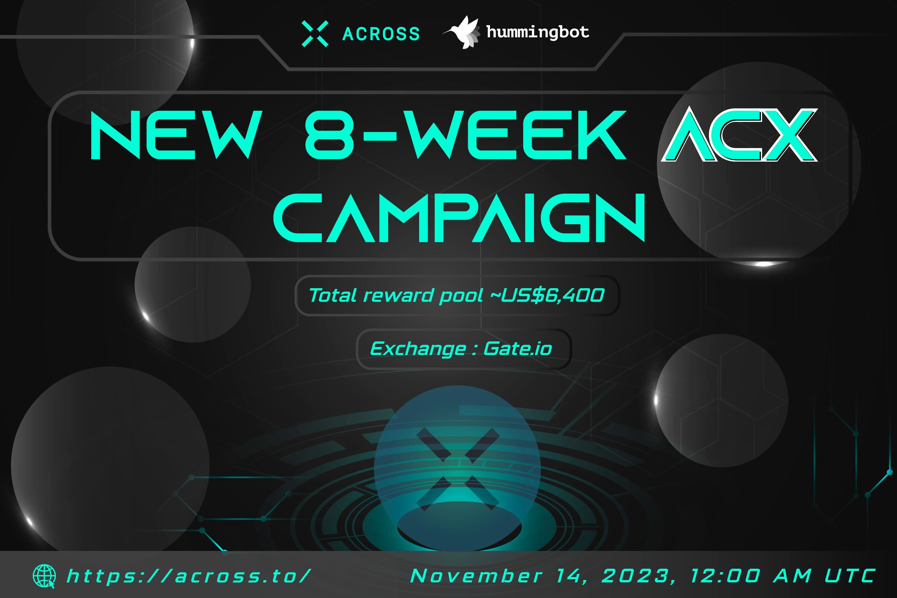 We are thrilled to announce a brand-new, eight-week liquidity mining campaign on Gate.io for ACX, with a reward pool valued at about US $6,400! The launch of this campaign is scheduled on November 14, 2023, at 12:00 am UTC. Participate in this campaign to trade pairs of ACX/USDT and win rewards!